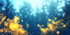 A mesmerizing display of shimmering golden particles dancing against a deep blue backdrop, creating a scene of ethereal beauty and wonder
