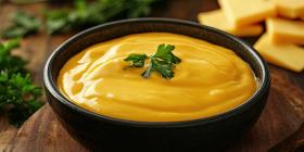 A bowl of smooth, golden cheese sauce, garnished with fresh parsley, beckons with its rich, indulgent aroma and promises pure cheesy satisfaction