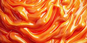 A vibrant abstract art piece created by the playful interplay of ketchup and mustard, showcasing their contrasting colors and textures