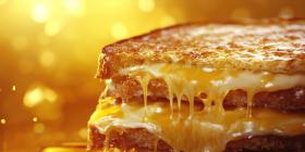 A golden-brown grilled cheese sandwich oozes with melted cheese, creating a mouthwatering spectacle of comfort food perfection