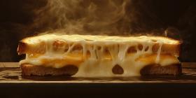 A golden-brown grilled cheese sandwich oozes with melted cheese, creating a mouthwatering spectacle of comfort food perfection