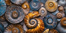 Nature's Abstract Art: A Kaleidoscope of Colors and Patterns in a Cut and Polished Ammonite