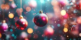 A Festive Symphony of Red and Gold: Christmas Ornaments Gleam Against a Backdrop of Sparkling Lights