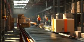 A Cardboard Odyssey: A Package Travels Along a Conveyor Belt in a Modern Warehouse
