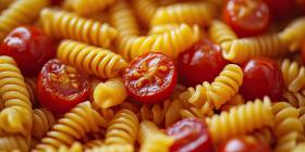 A Symphony of Colors: Rotini Pasta Twists with Cherry Tomatoes, Ready for a Flavorful Feast