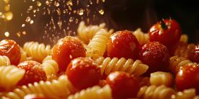 A Symphony of Colors: Rotini Pasta Twists with Cherry Tomatoes, Ready for a Flavorful Feast