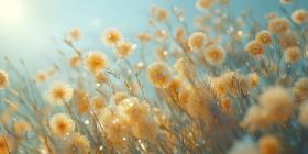 A Sun-Kissed Meadow: A Field of Delicate Yellow Flowers Basking in the Warm Glow of Sunset