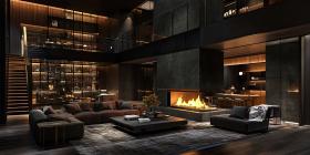 A Luxurious Retreat: A Modern Living Room with a Grand Fireplace and Opulent Furnishings