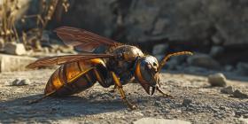 A Close Encounter: A Golden Hornet Forages for Food on a Sunny Day