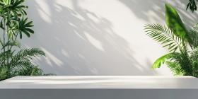 A Verdant Oasis: Sunlight Dappling through Lush Foliage, Casting Shadows on a Serene Wall