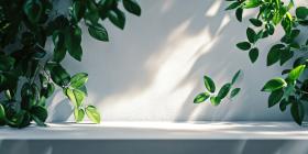 A Verdant Oasis: Sunlight Dappling through Lush Foliage, Casting Shadows on a Serene Wall