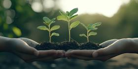 Nurturing New Life: Hands Gently Cradle a Sprouting Seedling, Symbol of Growth and Hope