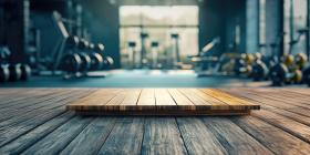 A Workout View: A Wooden Deck Overlooks a Modern, Well-Equipped Gym with Large Windows