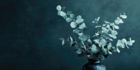 A Touch of Tranquility: A Vase of Eucalyptus Branches Adds a Verdant Touch to a Dark and Moody Setting
