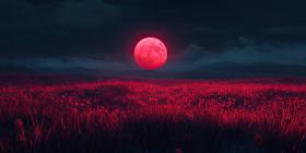 Moon Rising: A Crimson Moon Bathes a Field of Tall Grass in an Eerie Glow