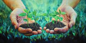 Nurturing New Life: Hands Gently Cradle a Sprouting Seedling, Symbol of Growth and Hope