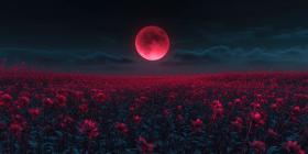 Moon Rising: A Crimson Moon Bathes a Field of Tall Grass in an Eerie Glow