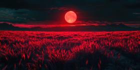 Moon Rising: A Crimson Moon Bathes a Field of Tall Grass in an Eerie Glow