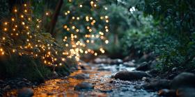 A Path of Enchantment: A Magical Forest Illuminated with a Dazzling Display of Purple and Pink Lights