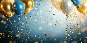 A Celebration in the Air: Colorful Balloons and Confetti Rain Down, Creating a Festive Atmosphere