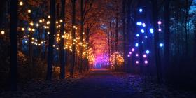 A Path of Enchantment: A Magical Forest Illuminated with a Dazzling Display of Purple and Pink Lights