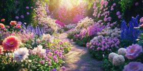 A Vibrant Symphony of Blooms: A Field of Flowers Basking in the Warm Glow of Sunset