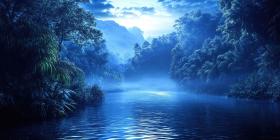 A Misty Enchantment: A River Winds Through a Verdant Valley, Mist Cloaking the Mountains in an Air of Mystery