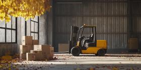 A Day's Work: A Forklift Driver Navigates Through a Maze of Shipping Containers in a Busy Warehouse