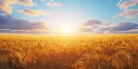 Golden Expanse: A Vast Field of Dry Grass Stretches Towards a Horizon Bathed in Sunlight