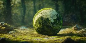 Mossy Orb: A Spherical Object Covered in Lush Green Moss Rests on a Bed of Mossy Ground