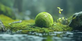 Mossy Orb: A Spherical Object Covered in Lush Green Moss Rests on a Bed of Mossy Ground