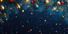 A Winter Wonderland: Festive Christmas Ornaments and Twinkling Lights Against a Night Sky