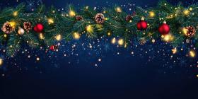 A Winter Wonderland: Festive Christmas Ornaments and Twinkling Lights Against a Night Sky