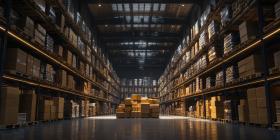 A Maze of Cardboard: A Warehouse Filled with Towering Shelves of Packed Boxes, Reaching Towards the Ceiling