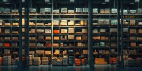 A Maze of Cardboard: A Warehouse Filled with Towering Shelves of Packed Boxes, Reaching Towards the Ceiling