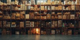 A Maze of Cardboard: A Warehouse Filled with Towering Shelves of Packed Boxes, Reaching Towards the Ceiling