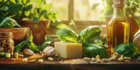 A Feast for the Senses: Fresh Basil, Parmesan Cheese, Garlic, Pine Nuts, and Olive Oil, Ready to Create a Culinary Masterpiece