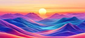 A Sun-Kissed Horizon: A Vibrant Abstract Landscape of Mountains Bathed in Warm, Golden Light