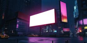 Neon Nights: A Billboard Stands Tall in a Cityscape Bathed in Vibrant Neon Lights