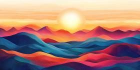 A Sun-Kissed Horizon: A Vibrant Abstract Landscape of Mountains Bathed in Warm, Golden Light