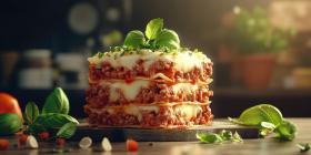 A Cheesy Delight: A Towering Lasagna, Layered with Rich Tomato Sauce, Ground Meat, and Melted Cheese, Ready to Serve
