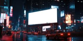 Neon Nights: A Billboard Stands Tall in a Cityscape Bathed in Vibrant Neon Lights