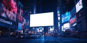 Neon Nights: A Billboard Stands Tall in a Cityscape Bathed in Vibrant Neon Lights