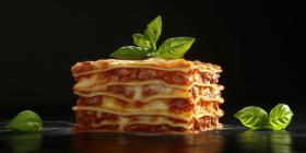A Cheesy Delight: A Towering Lasagna, Layered with Rich Tomato Sauce, Ground Meat, and Melted Cheese, Ready to Serve