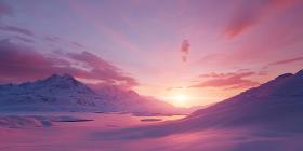 Serene Arctic Landscape Bathed in the Glow of a Vibrant Pink Sunset