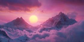 Serene Arctic Landscape Bathed in the Glow of a Vibrant Pink Sunset