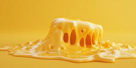 Close-up Macro of Golden Yellow Melted Cheese with Air Bubbles, Dripping and Flowing