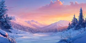 Serene Arctic Landscape Bathed in the Glow of a Vibrant Pink Sunset