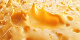 Close-up Macro of Golden Yellow Melted Cheese with Air Bubbles, Dripping and Flowing