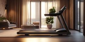 Modern Treadmill Placed in a Stylish Living Room Setting, Inviting Active Living and Home Fitness